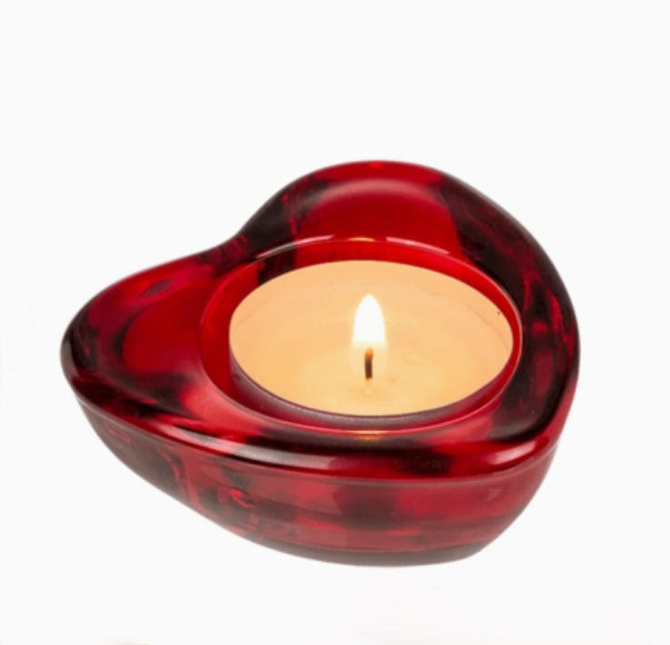 Roter Teelichthalter aus Glas in Herzform