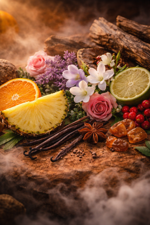 Die Komposition beginnt mit einer frischen, klaren Kopfnote aus Bergamotte, Mandarine und Ananas, sanft ergänzt durch rote Beeren und Freesie. Eine lebendige Leichtigkeit, die den Raum dezent belebt.